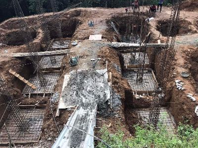 Des fondations bien profondes pour ancrer les piliers de soutien. Les piliers sont reliés entre eux à différentes hauteurs pour former un bloc bien stable.